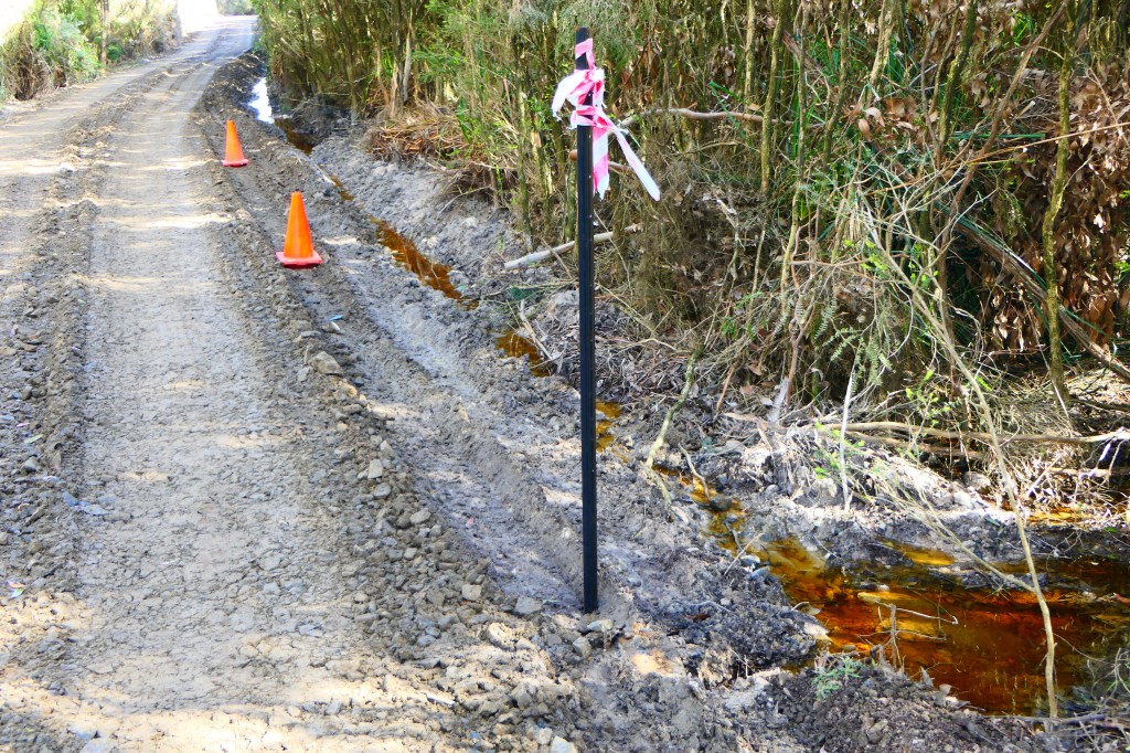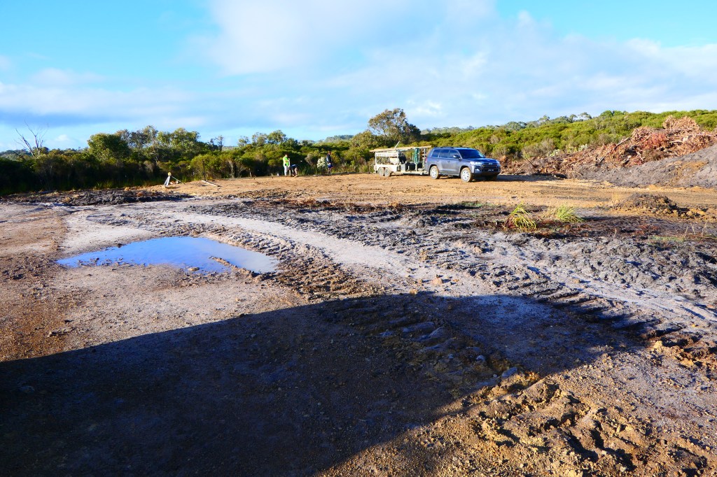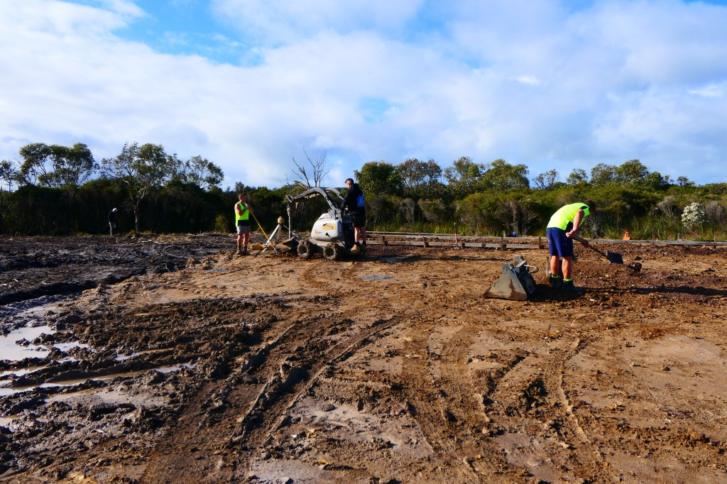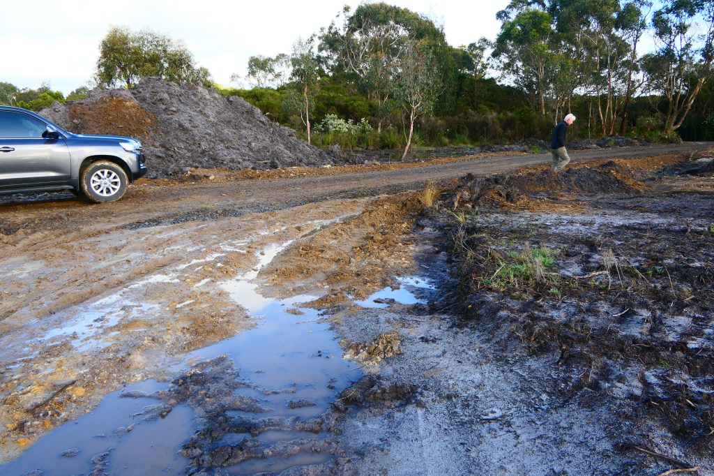 Moving the bulldozer excavator, grader and heavy tractor along the road has trashed it. We’ve had such a wet winter and spring, the road was almost impassable after they’d been through, just churned up mud after they’d been along it. And the house and shed site weren’t accessible – so much water on the ground.
