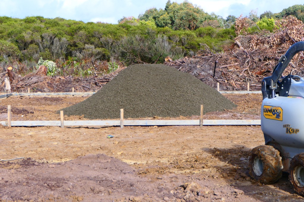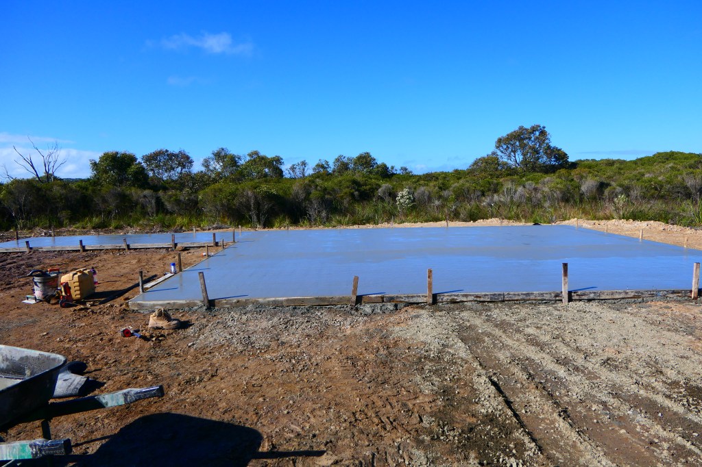 We were worried that the kangaroos and wallabies would leave footprints all over the concrete, but the slab was dry enough by the time we left that it wasn’t a problem. In the morning, there were roo foot prints all around the concrete, but only across the narrow section. Looked like they’d been investigating it but were a bit nervous to hop over the big slab, so tried out the smaller section.