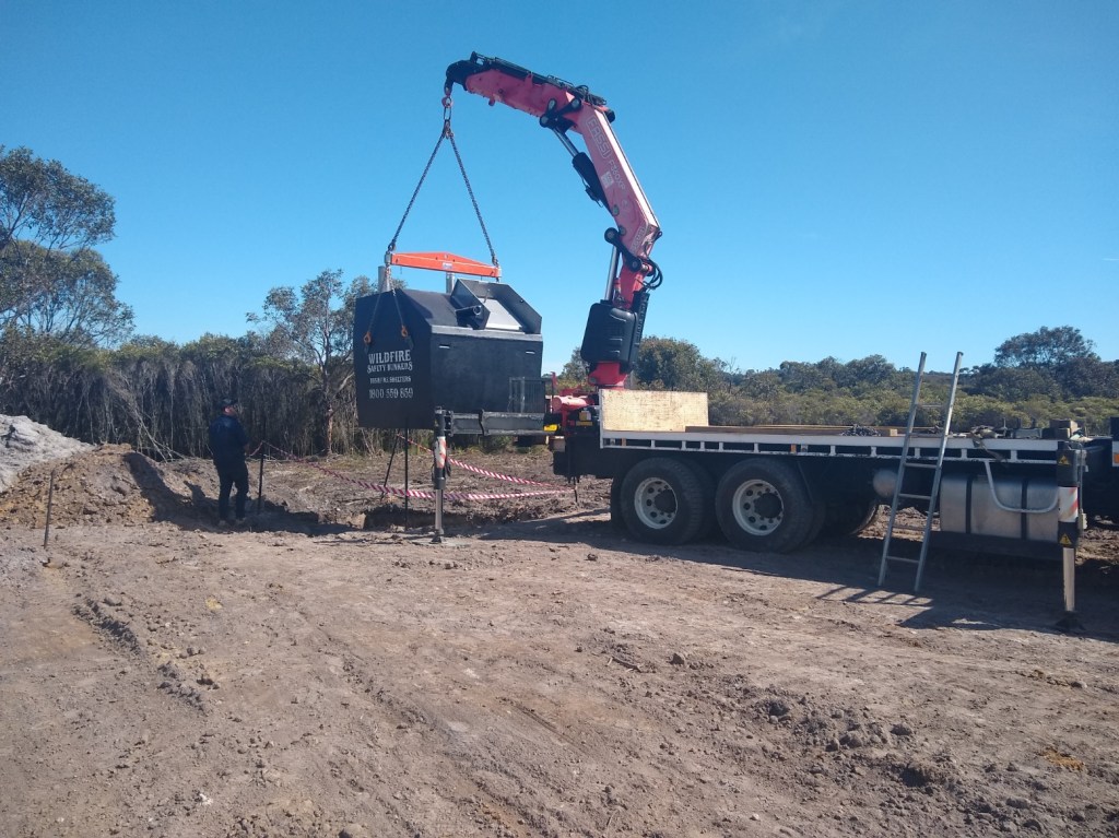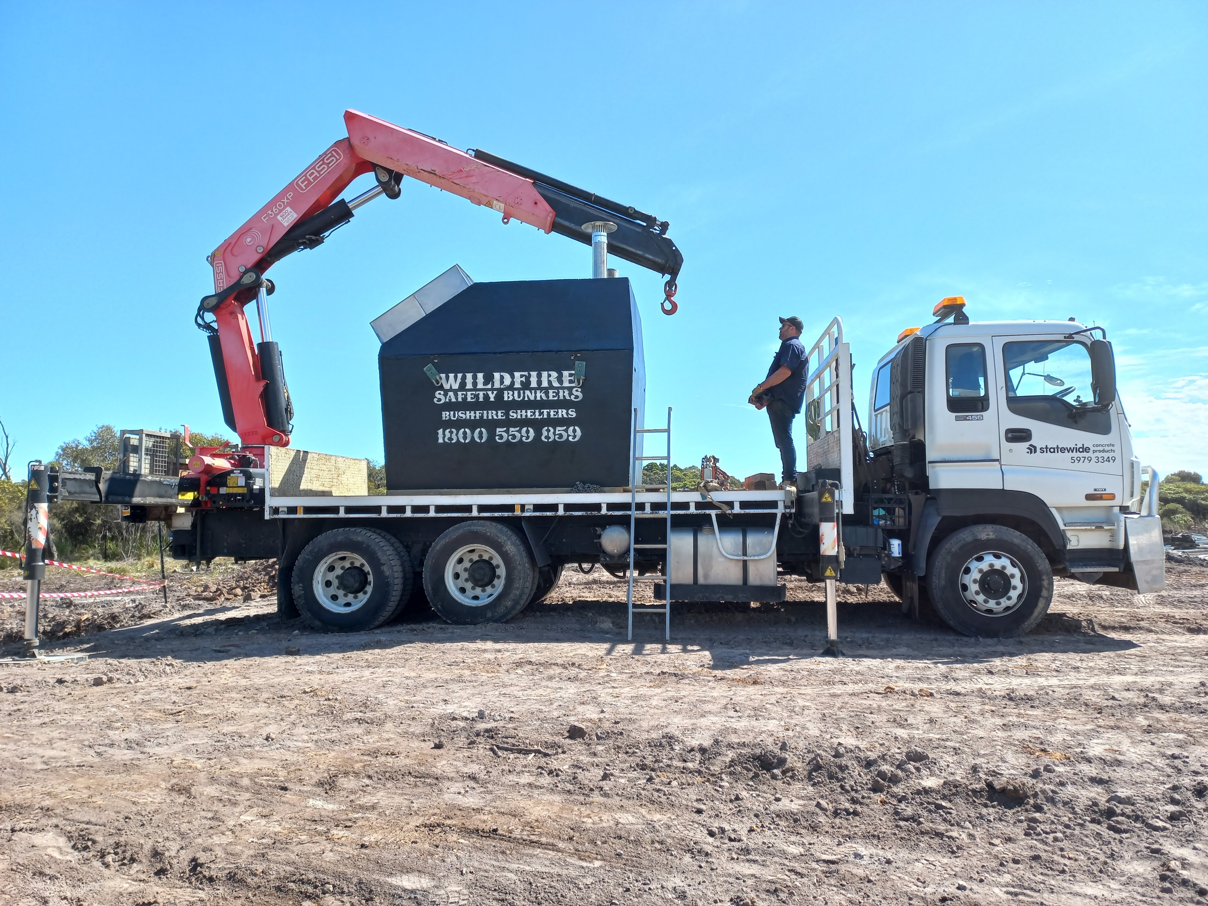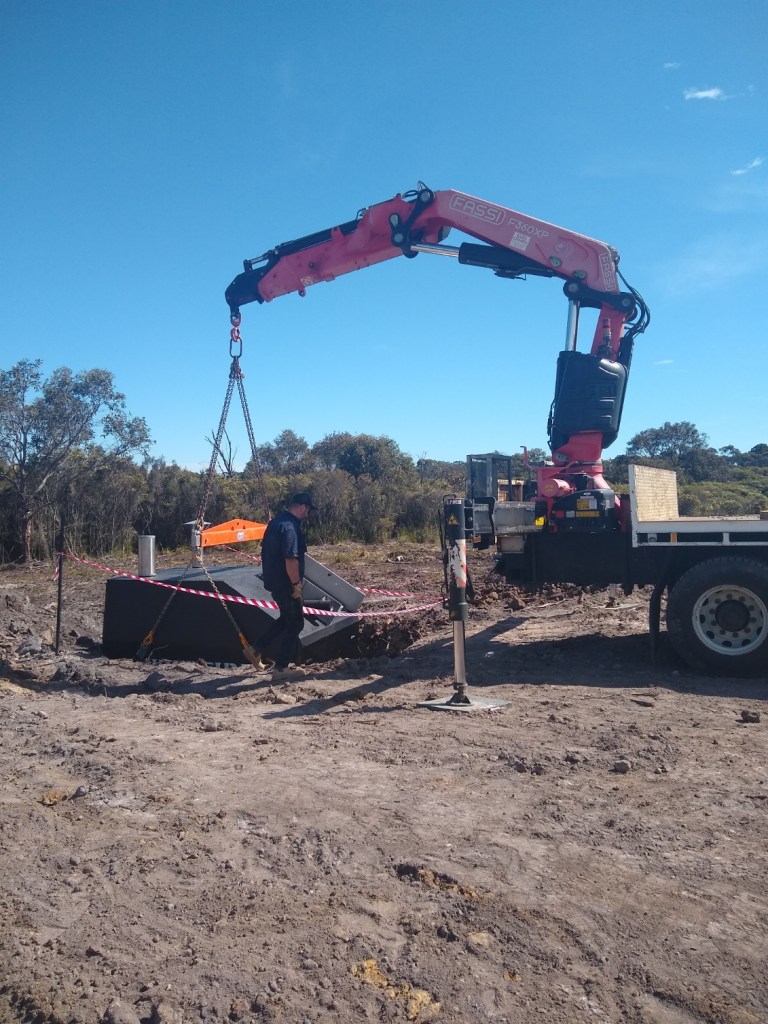 We’ve been sweating on the bunker availability and the weather. Installation would be easy if the bunker was installed before the house – the truck could just back over the prepared pad, and consolidated ground for the track to it and lower it in, otherwise it would need to drive over unconsolidated ground in a big arc and potentially get bogged. We got notified last week that it would be available on Tuesday, 6 months after we ordered it. Weather forecast was for rain over the weekend, but Monday and Tuesday were supposed to be fine. So finger’s crossed, we booked it in.