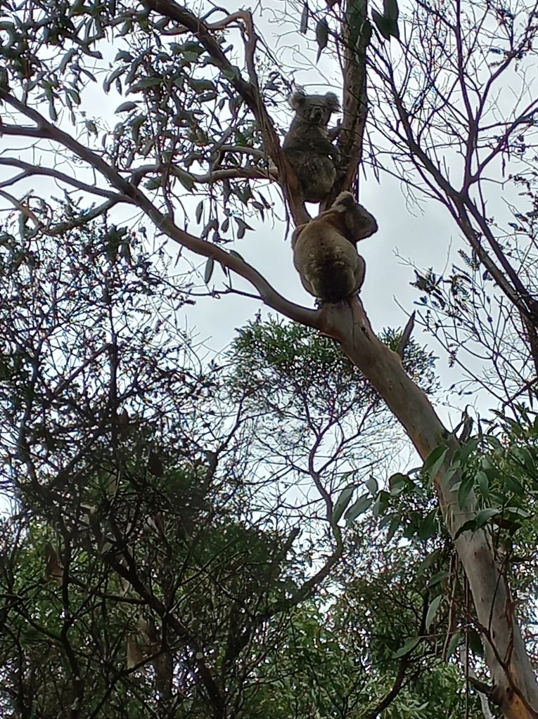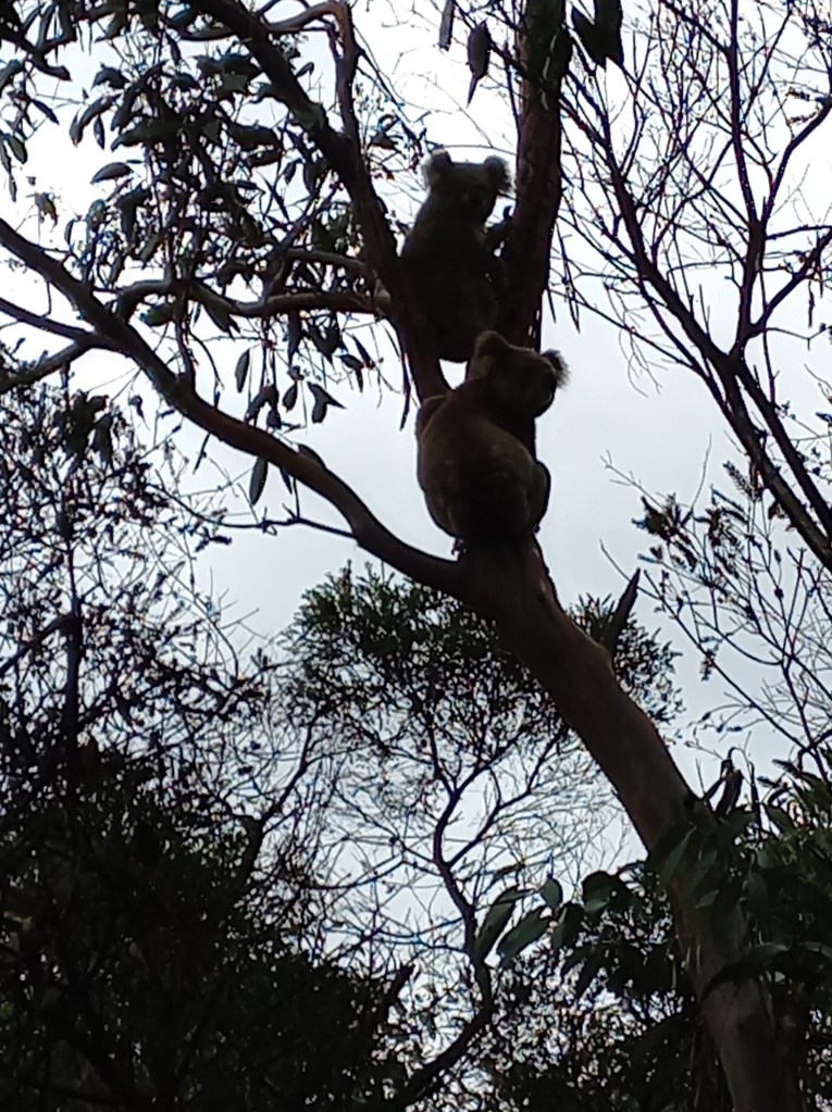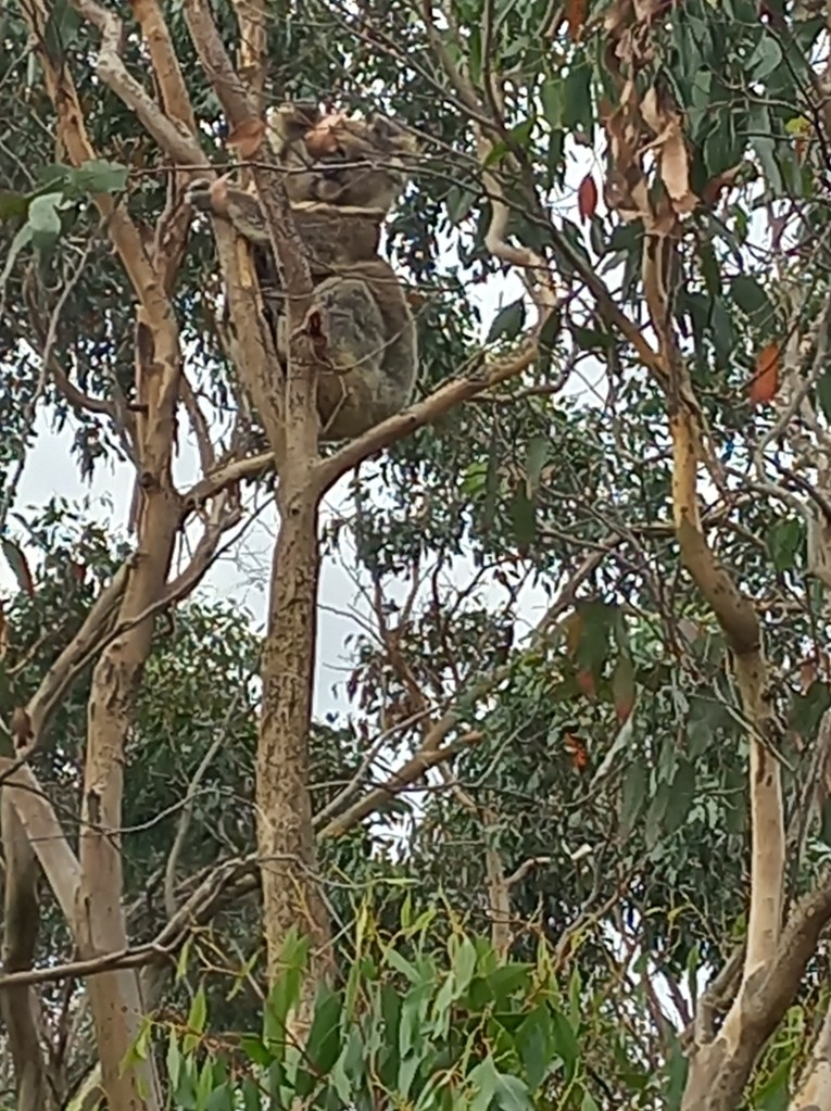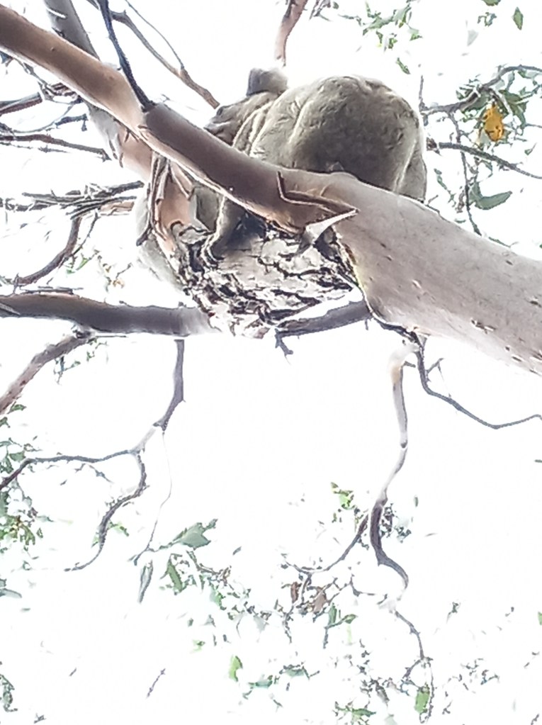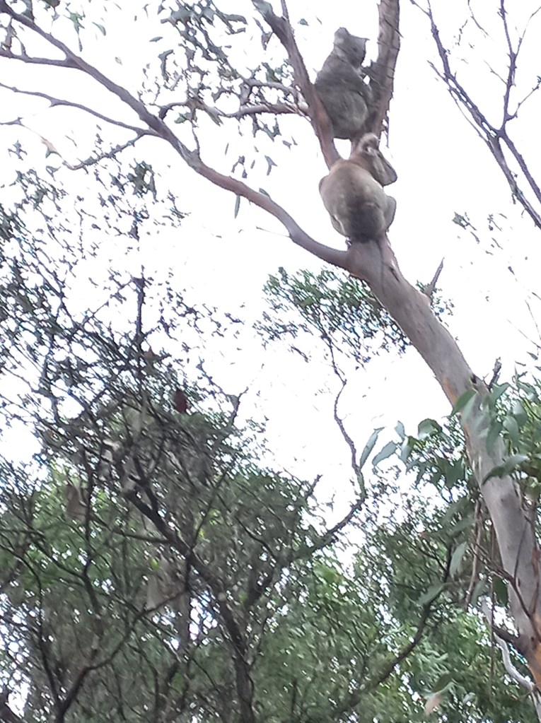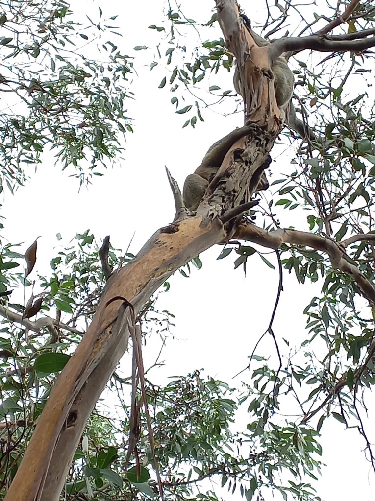 Heard a couple of koalas the other day – very unusual during daytime. Looked around and got a few photos and video on the phone. Unfortunately can’t post video here – the sound from the male comes out really clearly, but missed recording the female – I’ve posted it on facebook though. It’s amazing how loud it is! Male koalas make very loud long deep grunting sounds to attract females, while the female koala screams – sounds very much like a woman. screaming. Its quite disconcerting the first time you hear it camping in the bush!