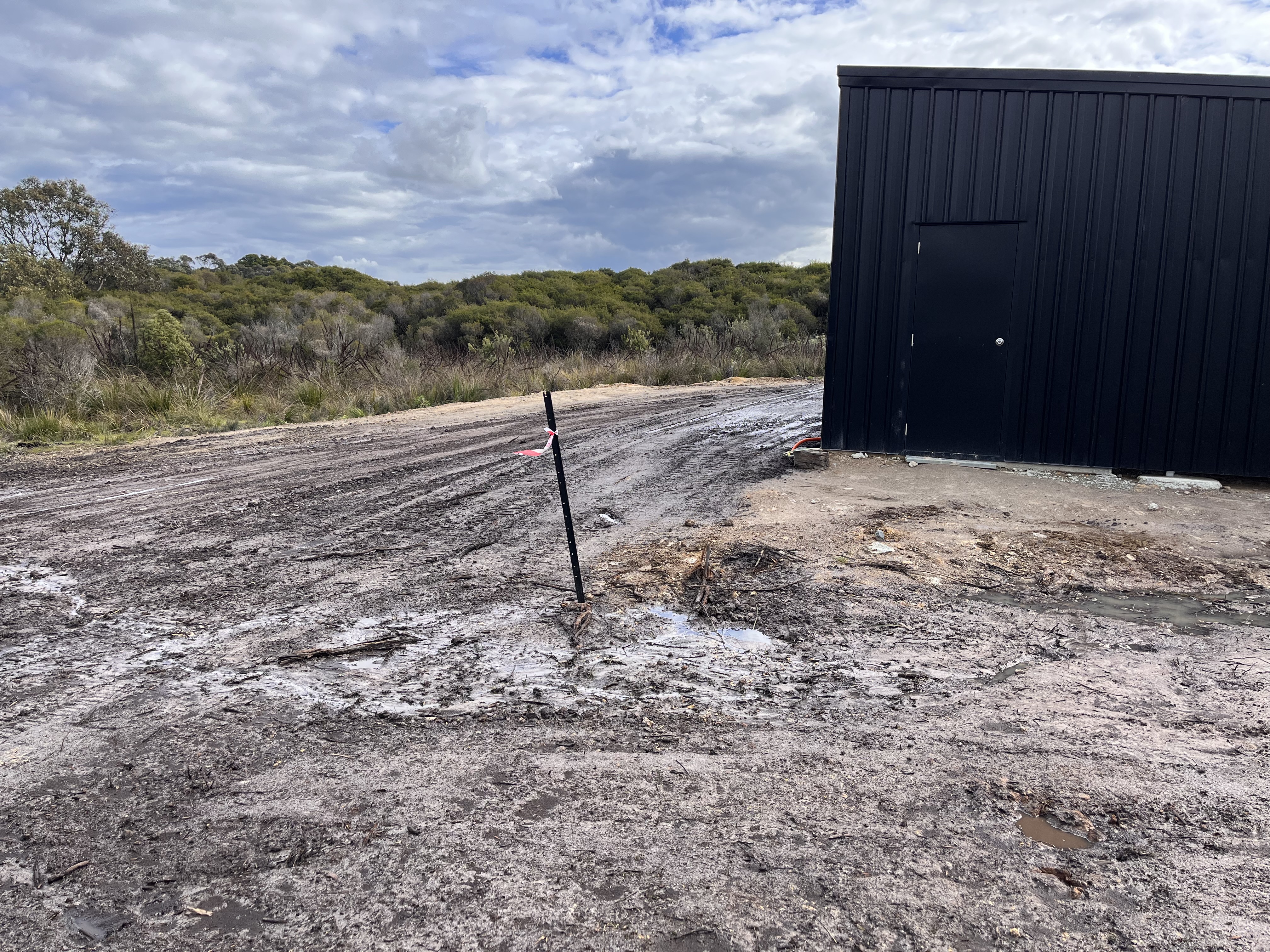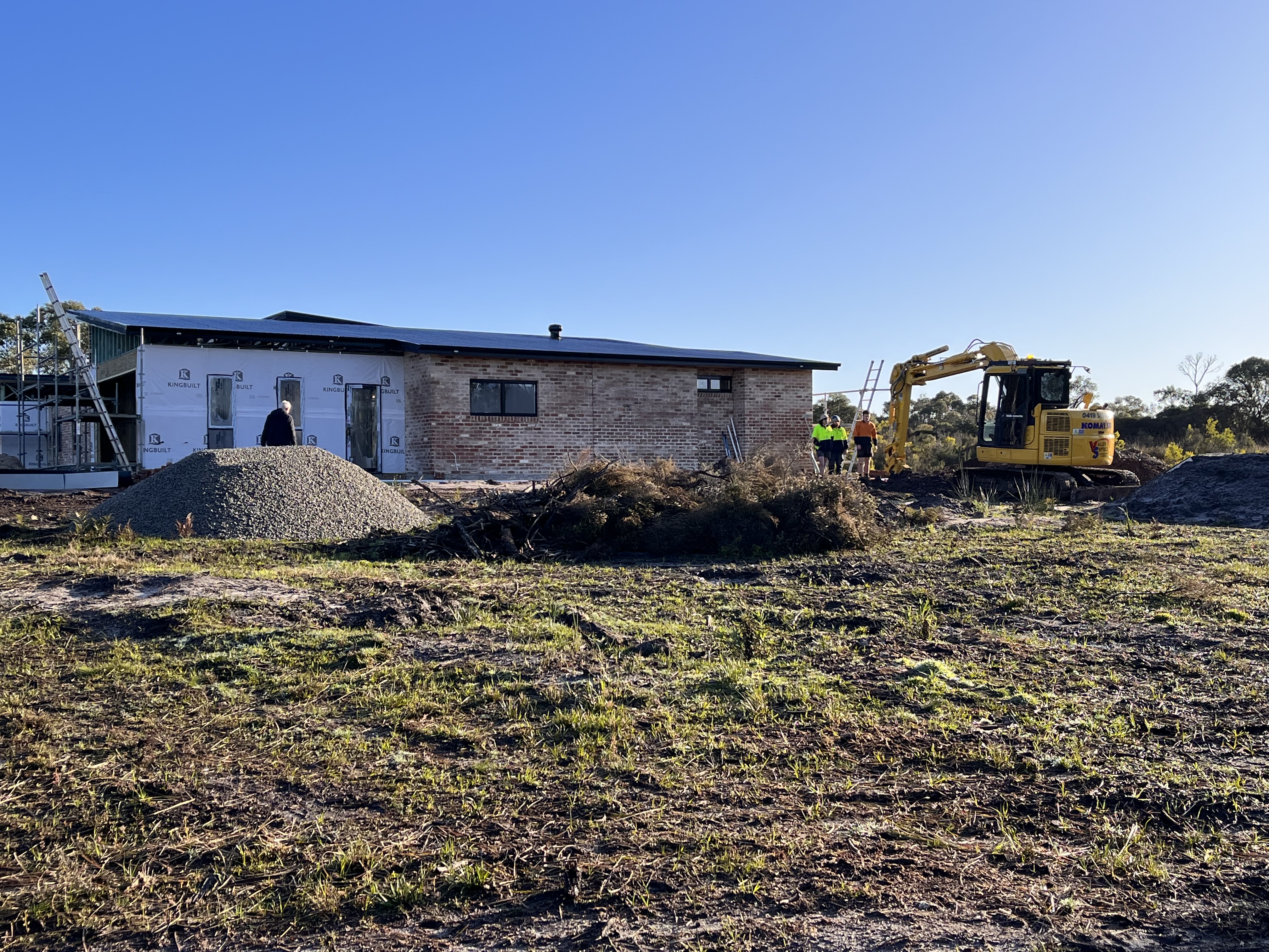 We had intended to get our ground works contractors in before they arrived but the weather had been too wet, and Valley Septics told us not to bother. They removed the stump themselves, and landscaped a clay bank at the back of the shed for us creating a gentle slope instead of a drop off and covered it all with topsoil. I guess they had to put the clay and topsoil somewhere, but they put it exactly where we needed it. And marked out all the ground that has stuff buried in it so we don’t damage anything with heavy equipment. Cost well under $20k.