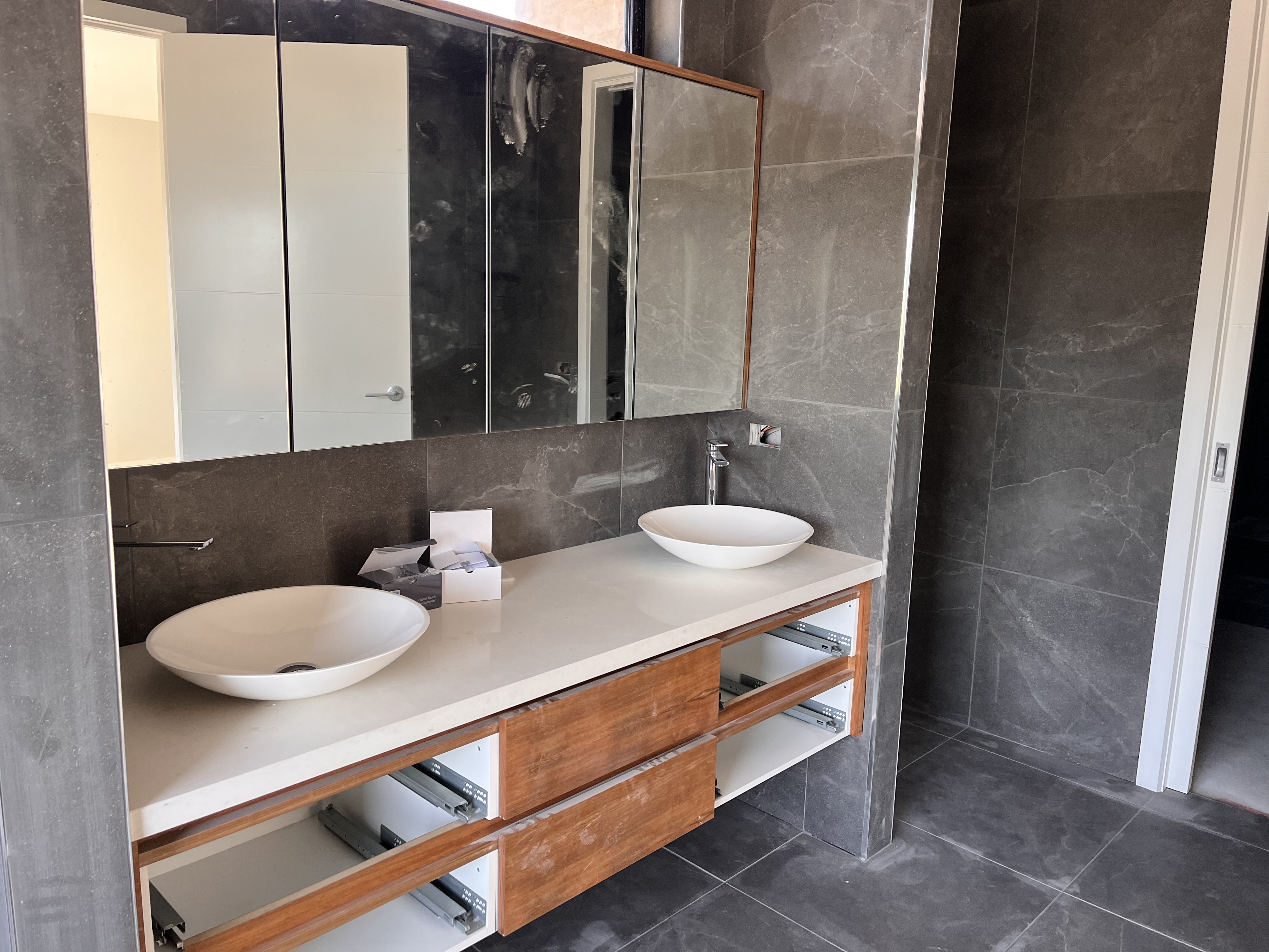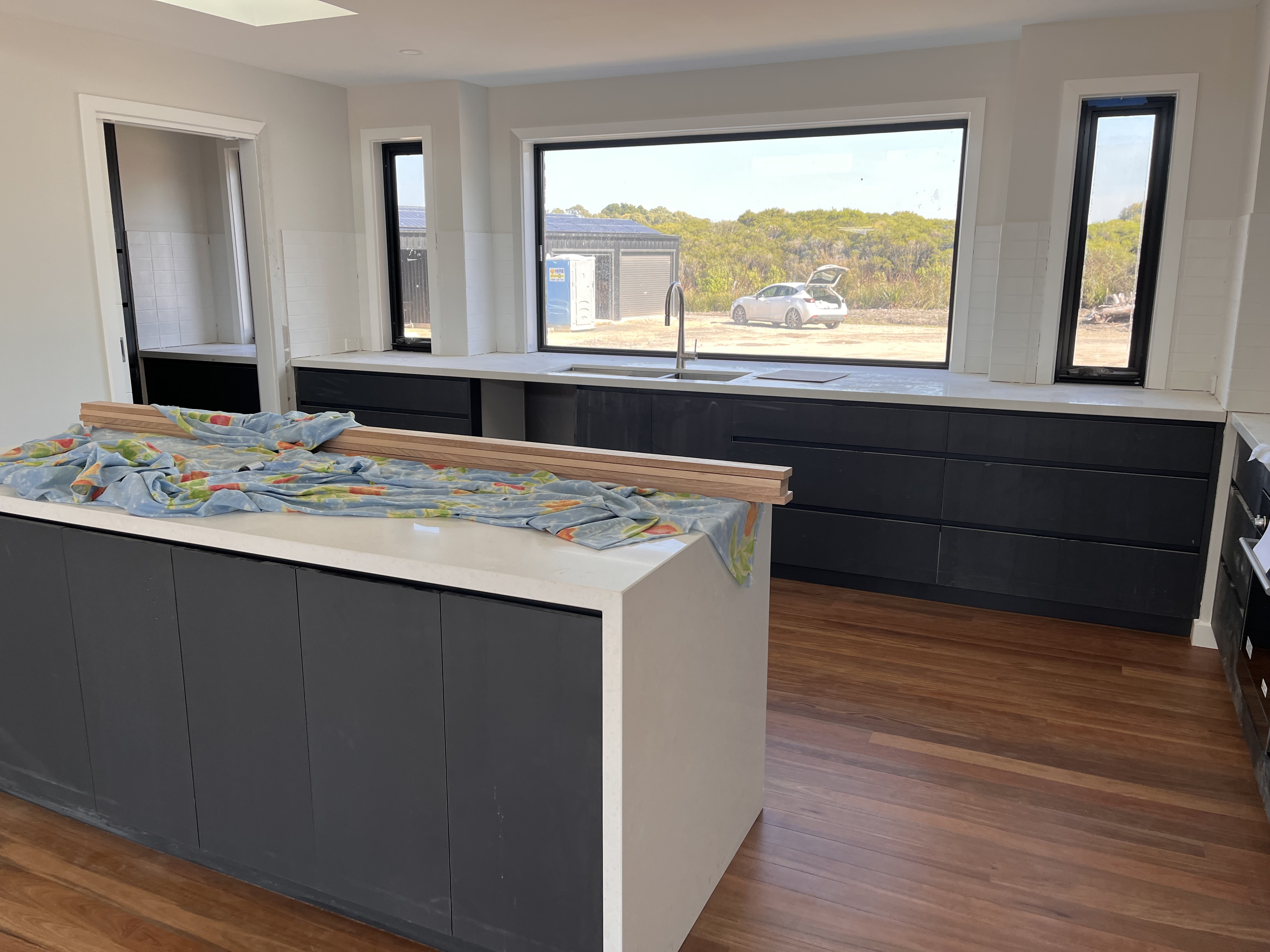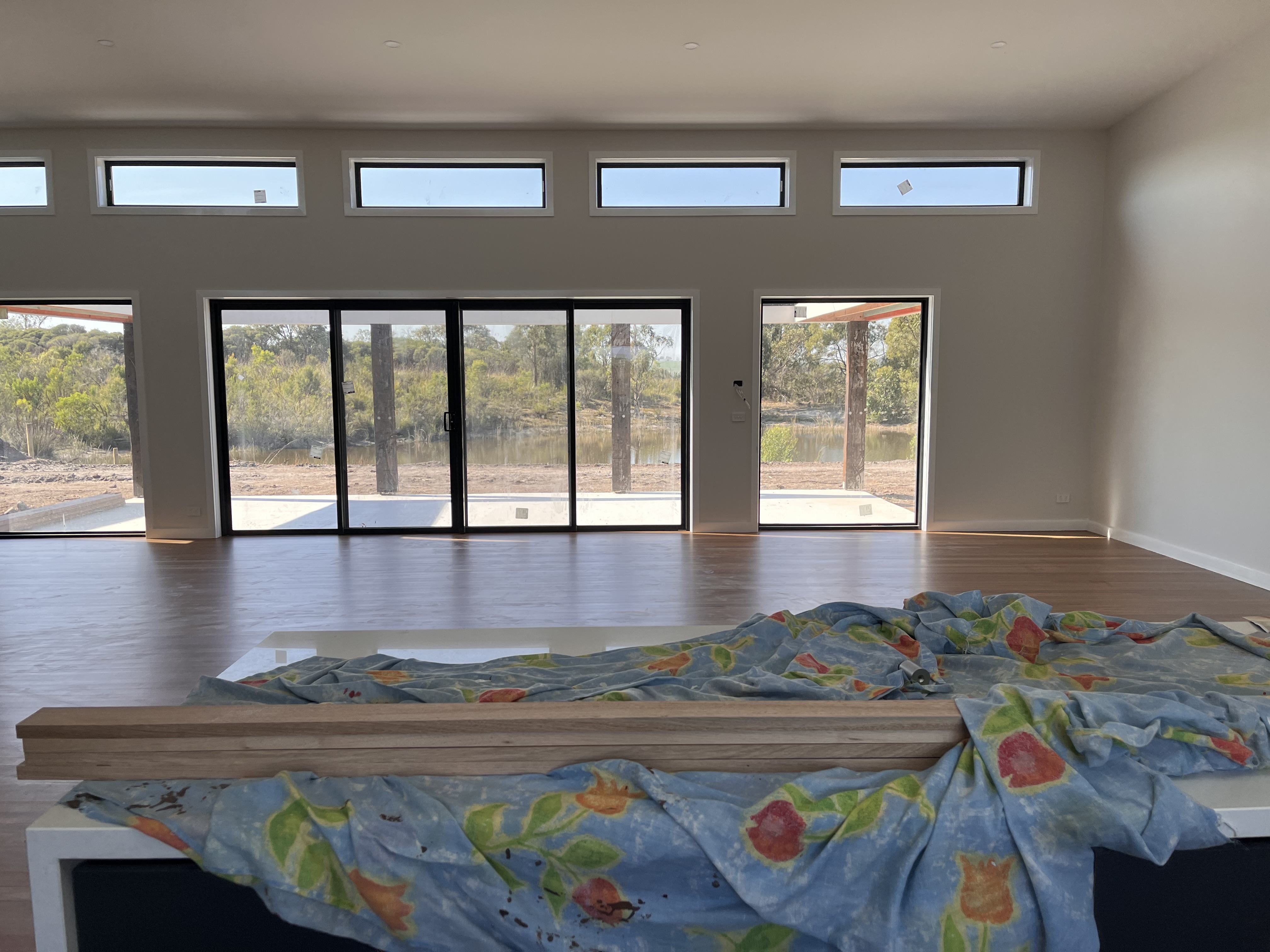 Still need to install AC, one hearth, wood heaters, most kitchen appliances, water heaters, water pump, heated towel rail, a range of controllers, switches and power points, shower screens, external post clean and seal, external painting completion and general repairs and touch up. Still a tonne of work, but you can see the end in sight. Weeks not months of work, if the tradies turn up.