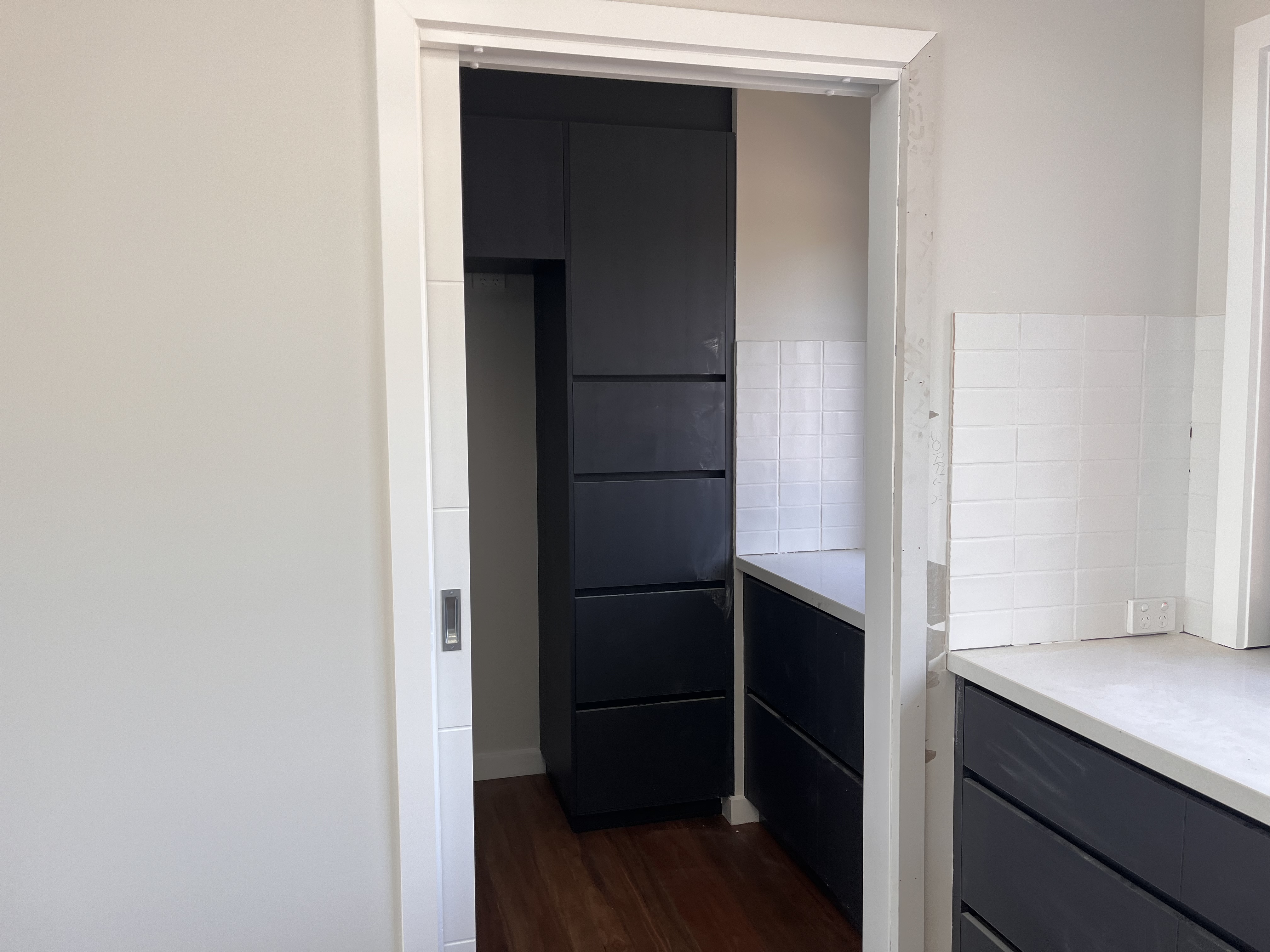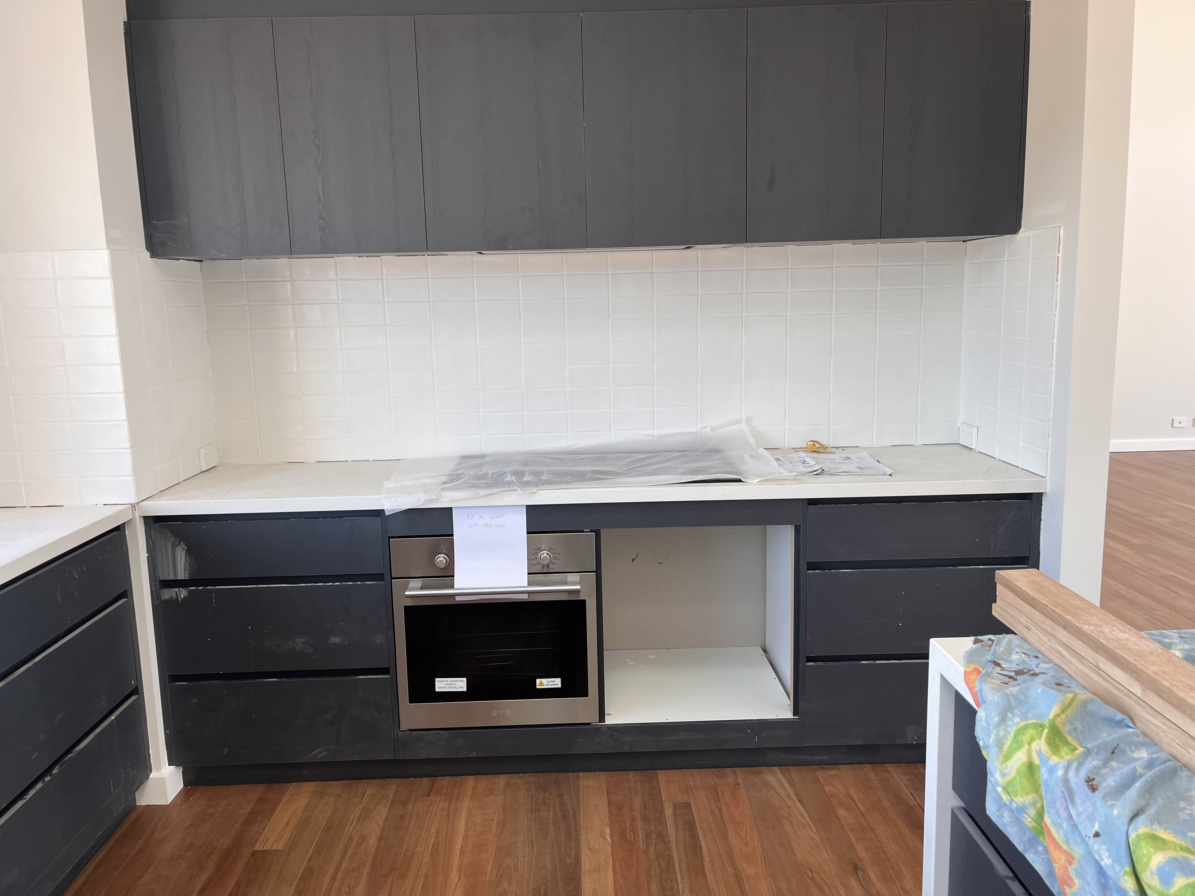 Wow – what a difference! We’ve had hoards of tradies turn up since the meeting, although no one for the last week. The internals have been mostly patched and painted – still a lot of tidy up/repair to be done. The tiling’s been done, the benches replaced, vermin proofing put into the tank (not done well – we’re patching with little strips of foam.) Wooden floor has been polished (but now scratched up a bit). Much of the electricals have been done. A lot of the internal plumbing fit out is done. Garage door is on – although Mark absolutely hates it. It’s not great, but it’s better than I thought it would be. I don’t like the paint colour, and I think some of the bench tops look a little yellow against the tiles, but Mark likes all of that. Wish we’d fully tiled the bathroom – it looks great in the ensuite.