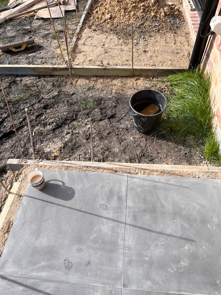 The builders left pavers so Mark’s paved the area outside the side doors although he did his back in doing it.