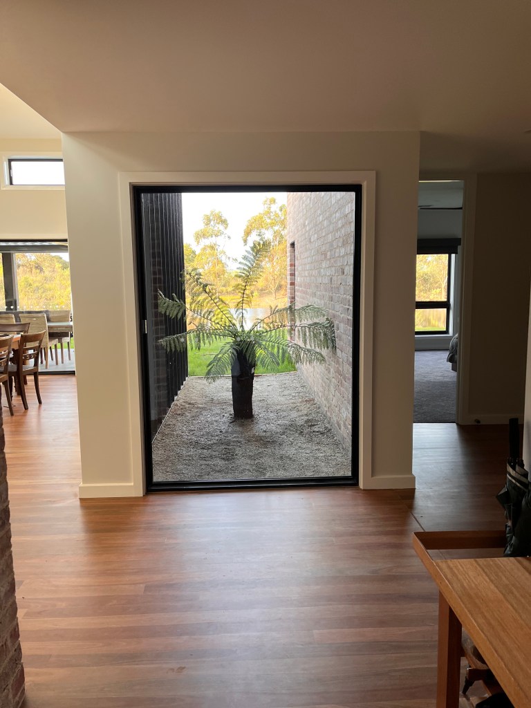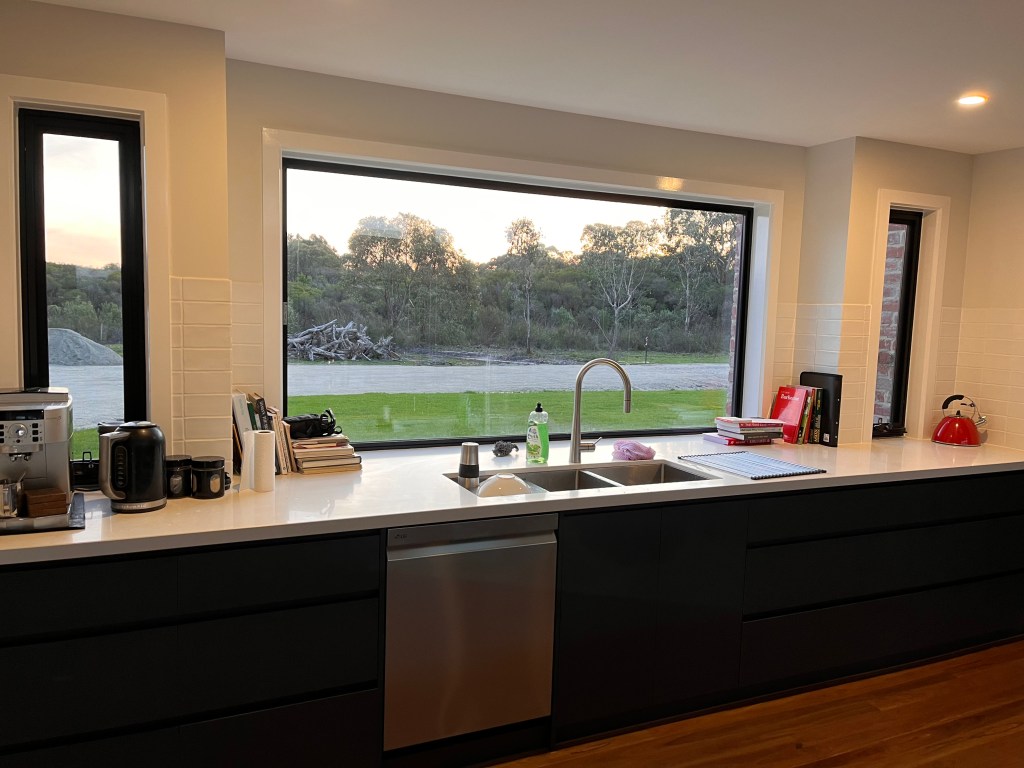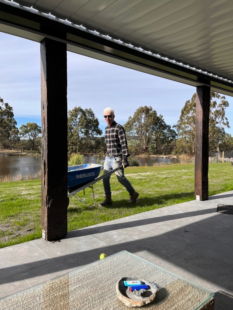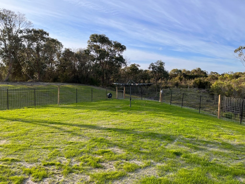 We’ve built a fenced yard for the dog enclosure – 1.5m tall dog mesh and run some fencing down to the dam to (mostly) contain them if we’re out the back. We still have to add the snake mesh before the weather warms up.