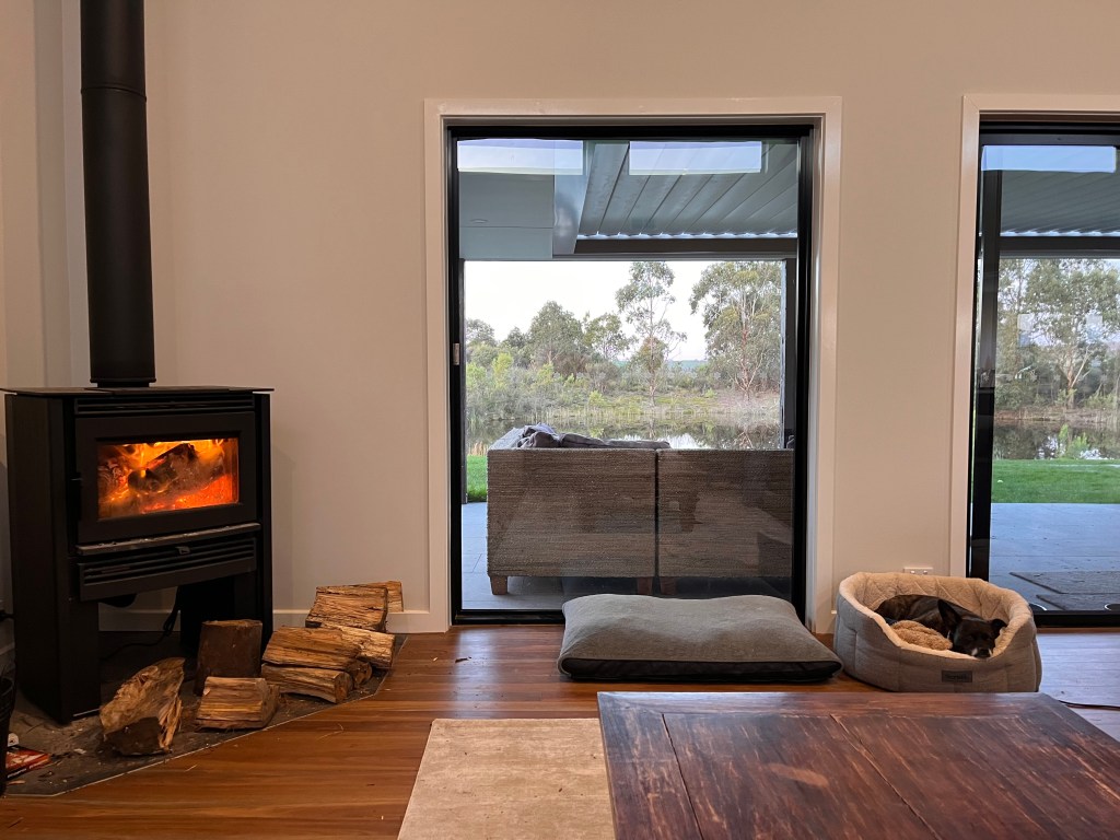 And it’s so WARM. The Pacific Energy Neo 2.5 (gotta give them a plug!) is absolutely brilliant. We started off with doors closed, but now leave everything open because it can warm the whole house. The odd thing is, it burns so well that you can’t smell or see woodsmoke outside. You have no idea that it’s in use. I know that’s great for your health, but I do like the smell of woodsmoke. Although wouldn’t want our lovely fresh water being tainted.