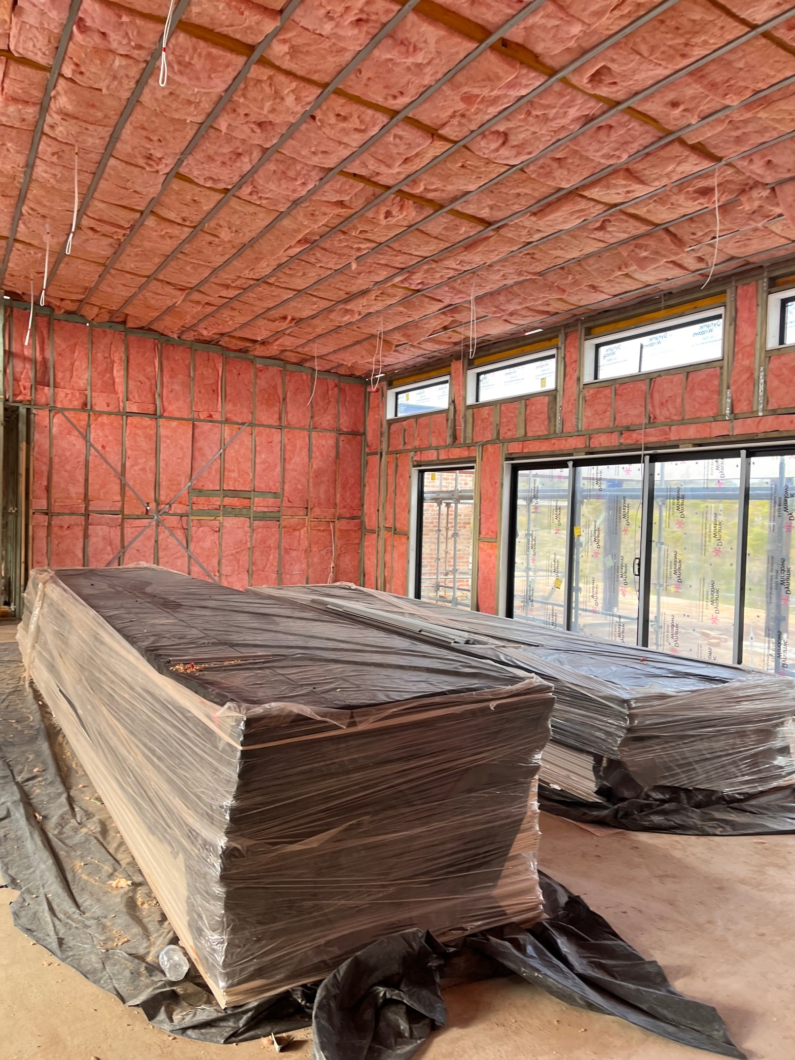 Despite the cladding and flashing not being installed, the builders went ahead and installed the insulation. R4.1 Pink batts to the ceiling, and R2.7 pink sound shield to the walls. This level of insulation gave us a 7.5 star house, so we decided that spending more money to upgrade it to a higher level justContinue reading “The house is (mostly) insulated – pink & fluffy”