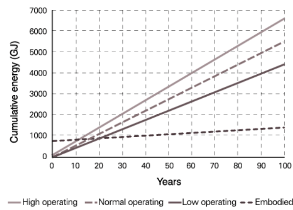 CSIRO research found that the “average” house has 10 to 20 years worth of energy use embedded in it.