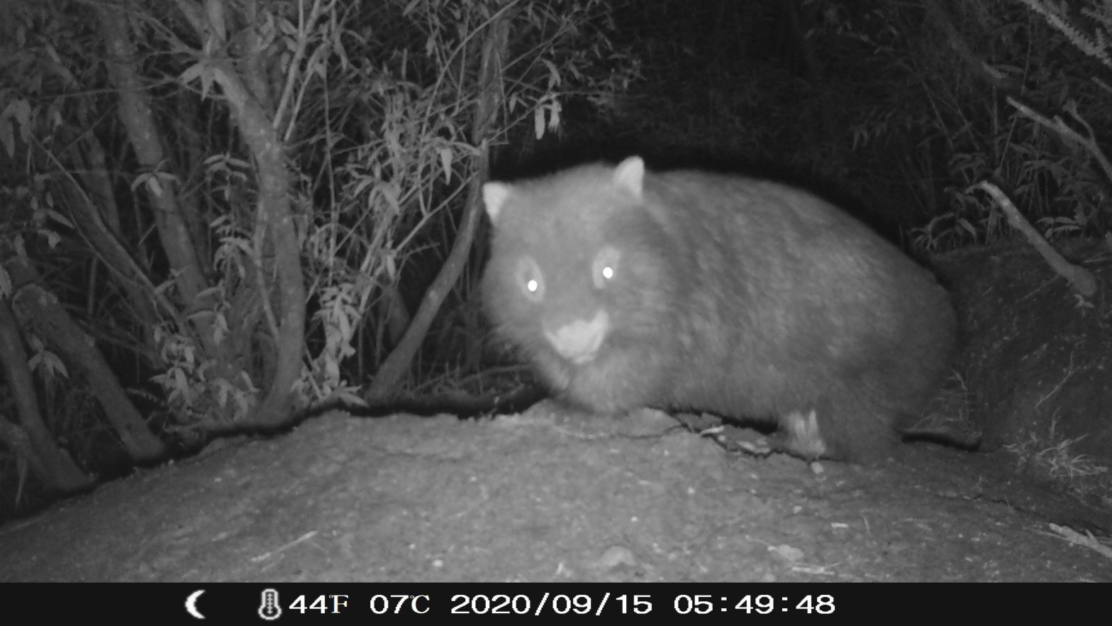Trail camera set up on a wombat hole to see what comes out…
